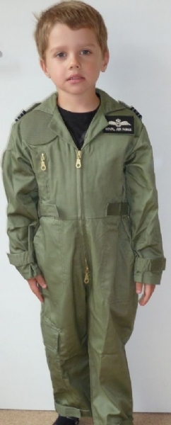 UK STYLE CHILDS FLYING SUIT - WITH RAF EPPAULETTES AND RAF NAME BADGE.